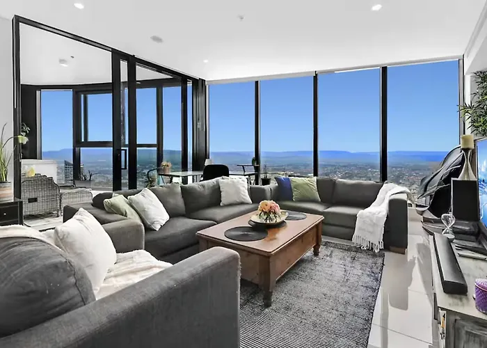 Cet appartement Level 70 Spacious Open Plain Living With Sky High Views - Pet Friendly Gold Coast de 133 m² est situé dans un quartier de plage, à 7 minutes de marche de Funtime et à 6 minutes de marche de la Plage de Surfers Paradise. Vous pourrez bénéficier d'un bain chaud, d'un sauna et d'une piscine couverte tout en séjournant assez proche du Marché Surfers Paradise Beachfront Markets.